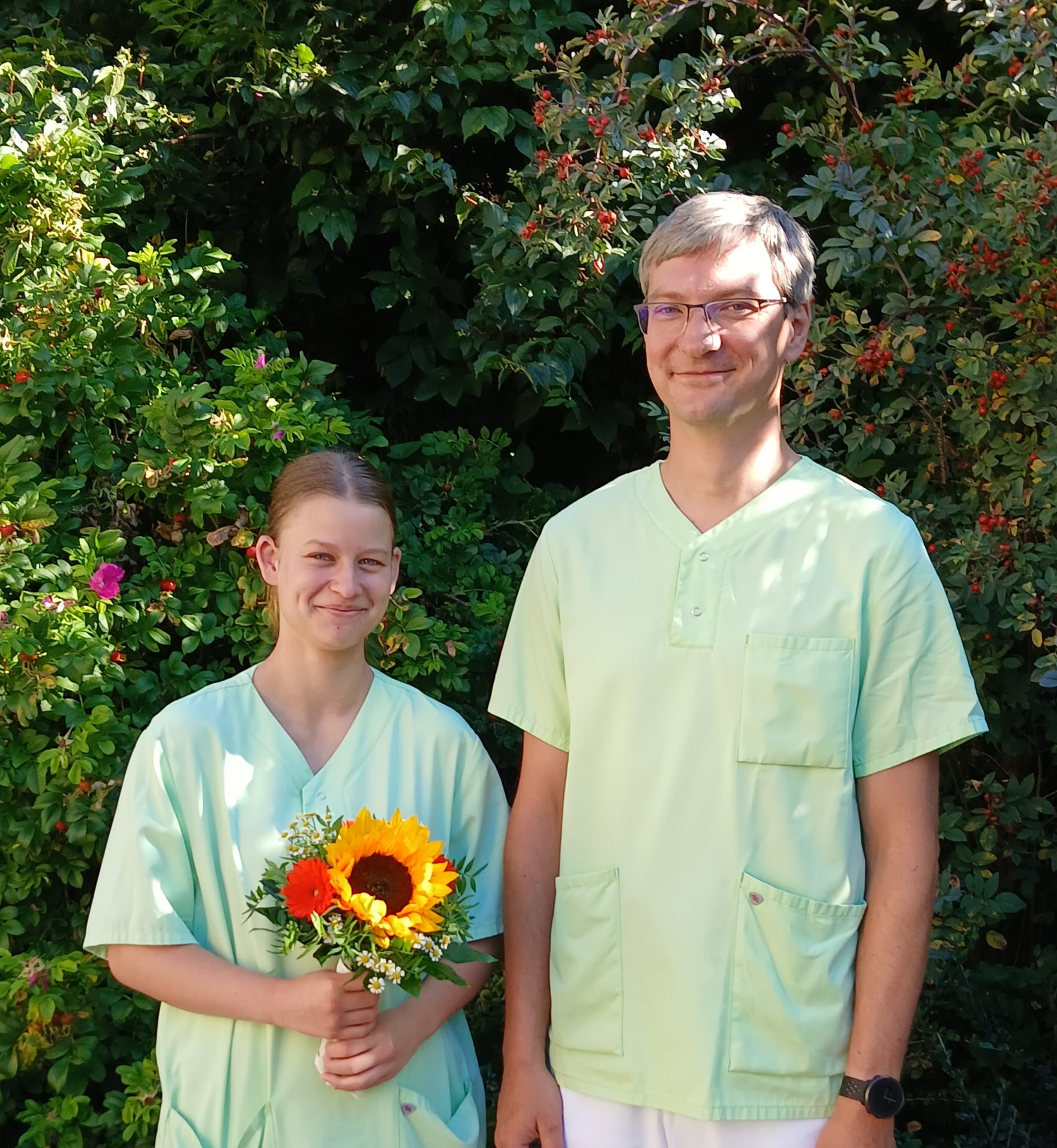 Herzlichen Glückwunsch an Caroline Fischer, die ihre Prüfungen zur staatlich anerkannten Krankenpflegehelferin mit Bravour meisterte und nun ihren Abschluss in der Tasche hat! Ab dem 1. September startet sie in unserem Pflegeheim „Herbstsonne“ in Eibenstock mit ihrer Ausbildung zur Pflegefachfrau. Wir freuen uns sehr, dass sie Teil unseres Teams bleibt und wünschen ihr für die kommende Ausbildung viel Erfolg und Freude! Abschließend möchten wir  der Berufsfachschule für die gute und vertrauensvolle Zusammenarbeit in der Ausbildung herzlich danken.