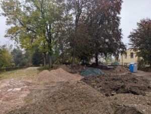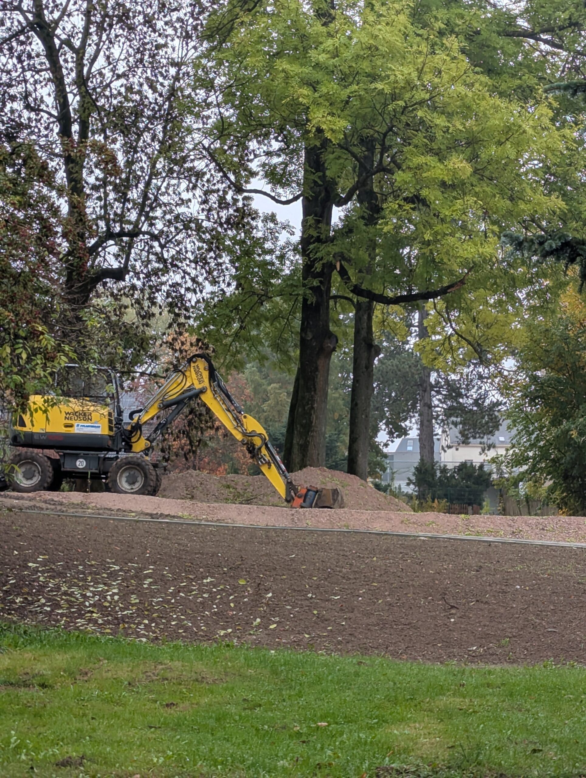 Nach und nach nimmt das Gelände des künftigen Verkehrsgartens neben unserem Pflegeheim „Herbstsonne“ Gestalt an. In den vergangenen Wochen wurde eifrig gearbeitet: Unter anderem wurden mehrere Kubikmeter Erde wurden umgegraben und bewegt und Schotter aufgetragen.