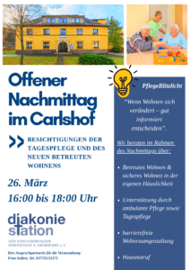 Am 26. März von 16:00 bis 18:00 Uhr laden wir Sie herzlich zu einem offenen Nachmittag in den Carlshof, Eibenstocker Straße 31 in Schönheide, ein.